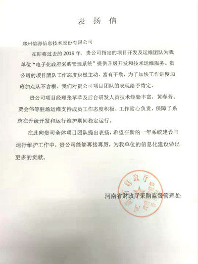 省財政廳對信源團隊的感謝信